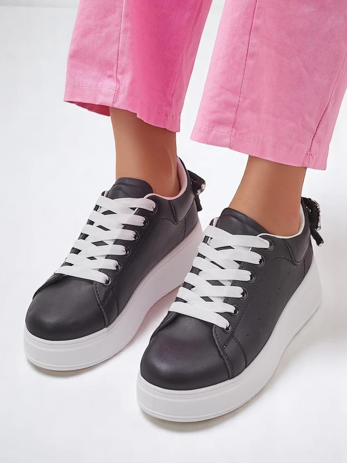- Teniși pentru femei din piele ecologică pe o platformă. Model cu șireturi, are o branț din piele ecologică. Încălțămintea are șireturi. Perfect pentru a crea ținute elegante!