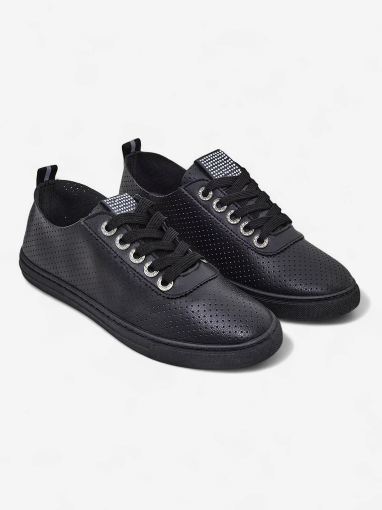 - Sneakers sportive pentru femei perforate din eco-piele. Branțul este din material textil. Model cu talpă plată. Partea superioară cu șireturi, adornată cu strassuri. Se vor potrivi perfect cu ținutele de zi cu zi!