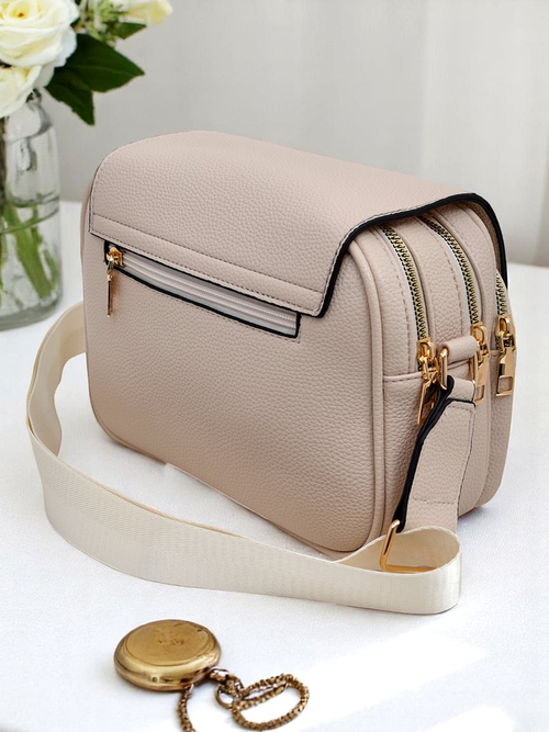 - Geantă de damă din piele ecologică, cu fermoar și închidere cu capsa. Modelul are 2 compartimente și o curea reglabilă. Perfectă pentru utilizarea zilnică!