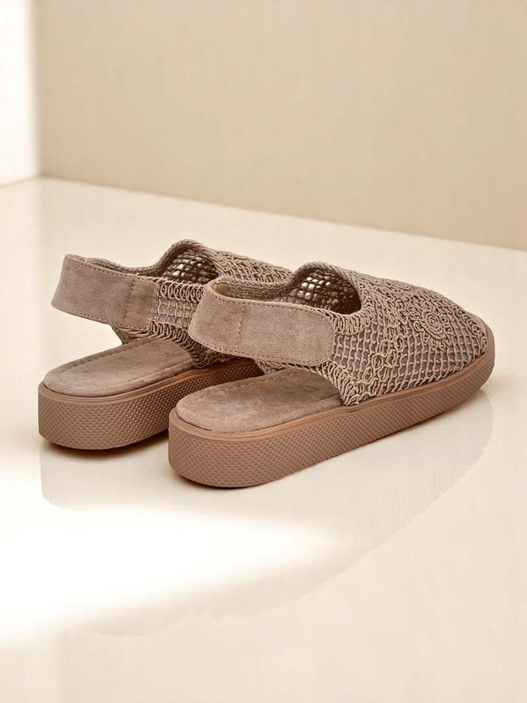 - Sandale decupate pentru femei pe talpă joasă – ideea perfectă pentru zilele toride de vară. Modelul este confecționat din material textil, cu branț din piele ecologică. Încălțăminte cu sistem de închidere Velcro. O combinație de stil și confort!