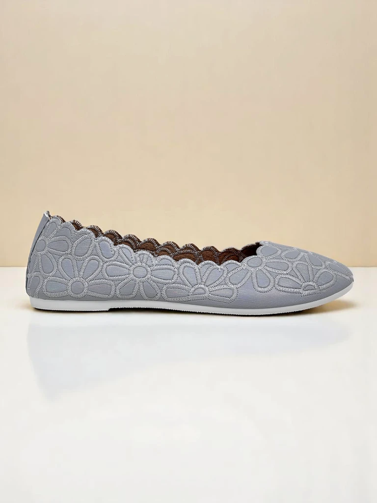 - Balerine excepționale confecționate din material textil, cu vârf rotund. Partea superioară este împodobită cu broderii florale delicate. Branțul moale din material textil asigură confort. Sunt perfecte pentru ținute elegante și la modă!