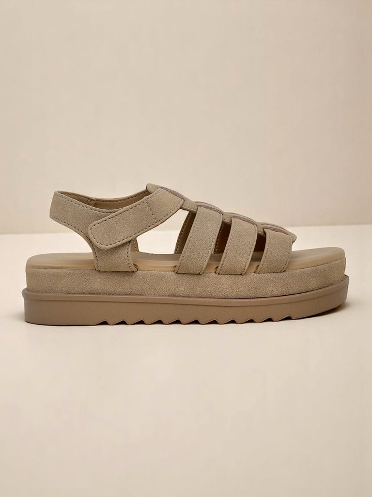 • Ženske sandale u stilu rimljanki izrađene od mekane eko brušene kože. Uložak od eko kože osigurava udobnost, a zatvaranje na čičak olakšava prilagodbu. Idealne za ljetne stajlinge.