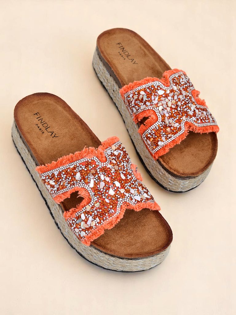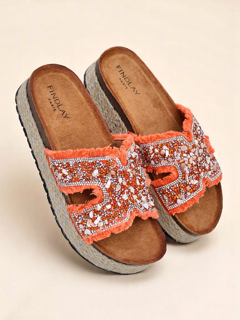 - Papuci de damă cu decorațiuni de litoral, realizați din material textil, branț din eco-piele întoarsă și talpă mai groasă – stil și confort pentru vară.