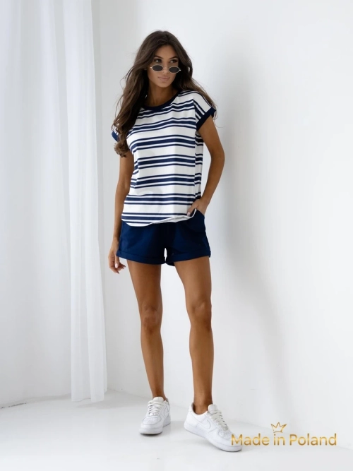 Royalfashion Set de damă din bumbac cu mâneci scurte și pantaloni scurți cu dungi