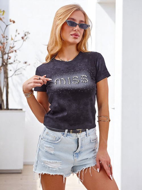 Royalfashion Tricou de damă din bumbac cu pietre strălucitoare MISS