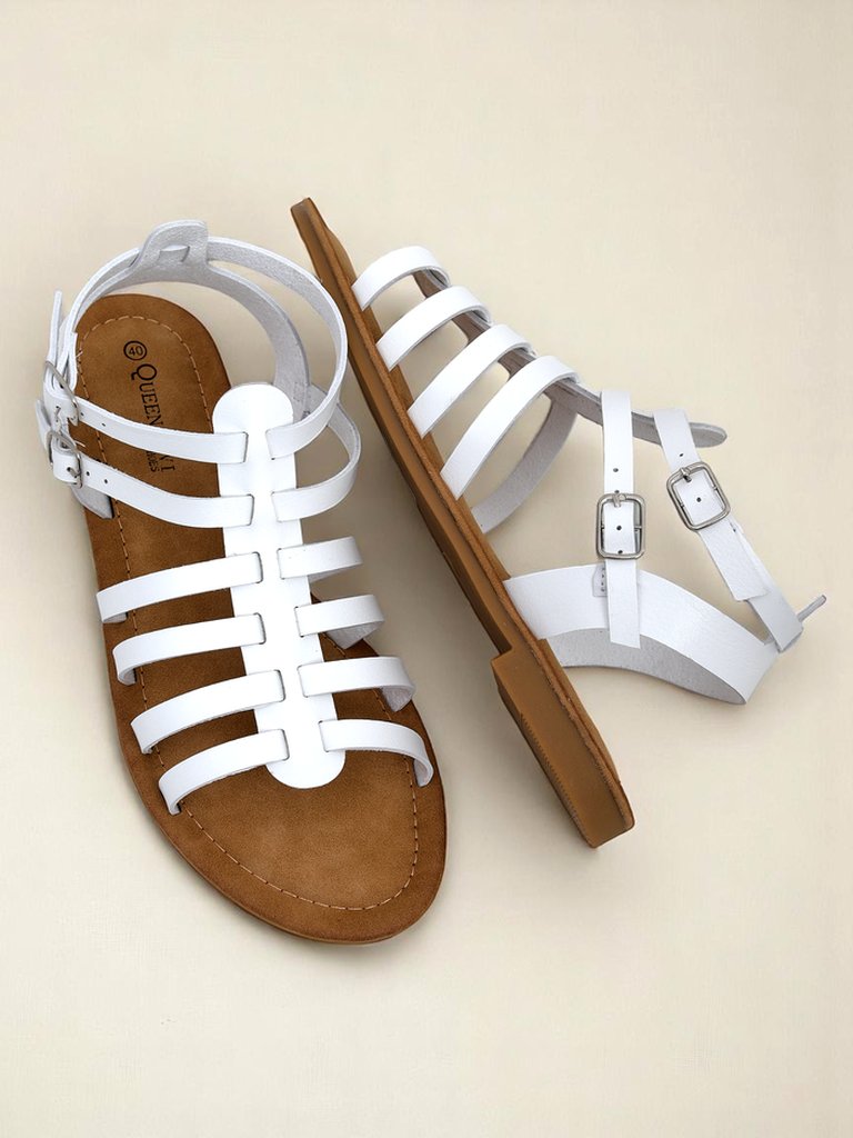 - Sandale din piele ecologică, inspirate de stilul roman. Închiderea cu cataramă asigură confortul, iar designul elegant adaugă rafinament oricărei ținute.