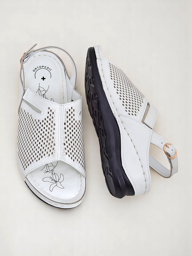 Sandalia Calcebianca ta un kombinashon di estilo italiano, tradishon di antikidat i konfort moderno. Trahá di kueru natural di kalidat haltu, nan ta garantisá no solamente un aparensia estétiko, pero tambe durabilidat di largura. E patronchinan kòrtá ku laser riba e parti ariba ta sigurá un ventilashon ekselente i tambe un efekto visual moderno i delikado, ku ta pas den e último tendensianan di sapatu di zomer ku un karakter un tiki retro. E plantia di kueru ku un impreshon floral i e cierre delikado i regulabel riba e faha ta sigurá ku e ta pas ku nesesidatnan individual, na mesun momentu protegiendo e pia i reforsando su posishon korekto.