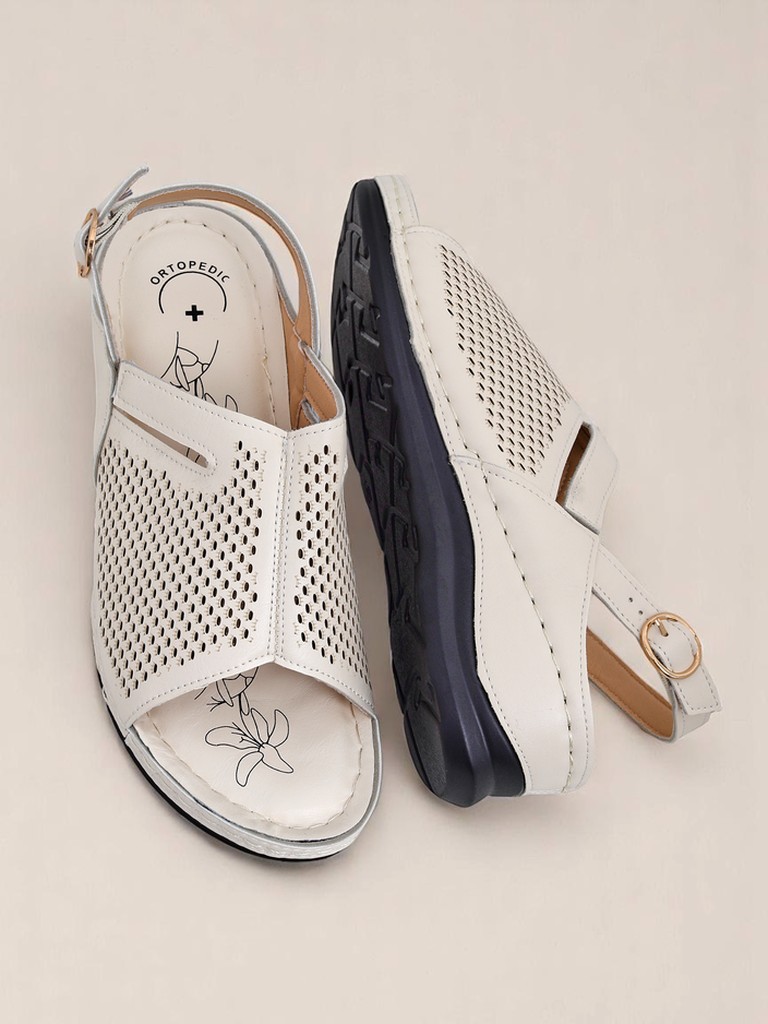 Sandalia Calcebianca ta un kombinashon di estilo italiano, tradishon di antikidat i konfort moderno. Trahá di kueru natural di kalidat haltu, nan ta garantisá no solamente un aparensia estétiko, pero tambe durabilidat di largura. E patronchinan kòrtá ku laser riba e parti ariba ta sigurá un ventilashon ekselente i tambe un efekto visual moderno i delikado, ku ta pas den e último tendensianan di sapatu di zomer ku un karakter un tiki retro. E plantia di kueru ku un impreshon floral i e cierre delikado i regulabel riba e faha ta sigurá ku e ta pas ku nesesidatnan individual, na mesun momentu protegiendo e pia i reforsando su posishon korekto.