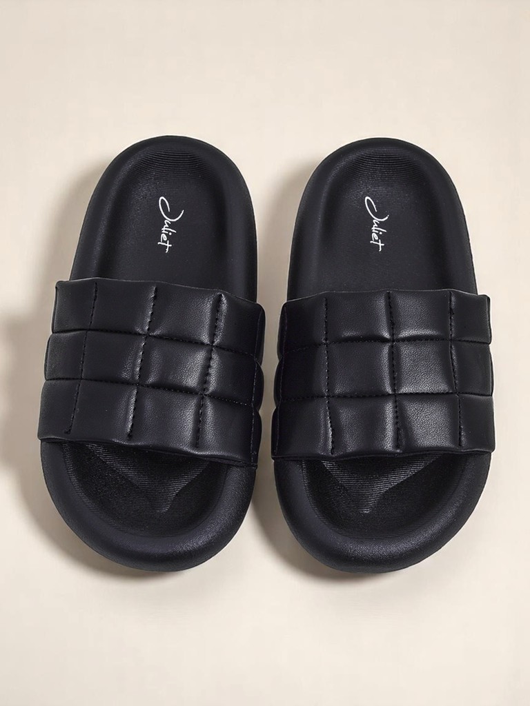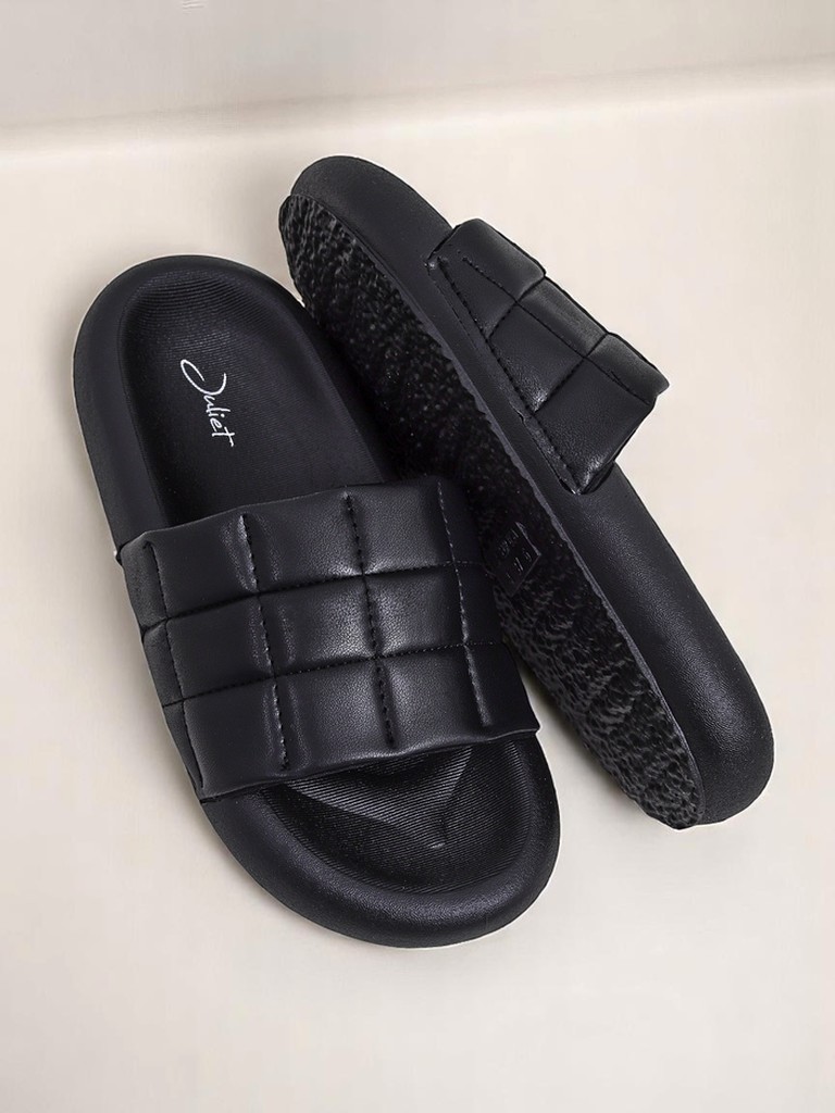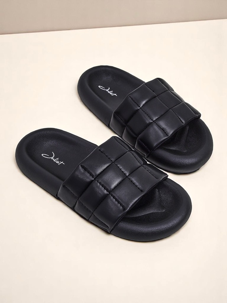 - Royalfashion Damskie klapki na płaskiej podeszwie Quilt Walk to stylowe klapki damskie z eko skóry z pikowaną cholewką i gumową podeszwą. Wygodne, lekkie i modne — idealne na lato, spacery i codzienne, swobodne stylizacje.