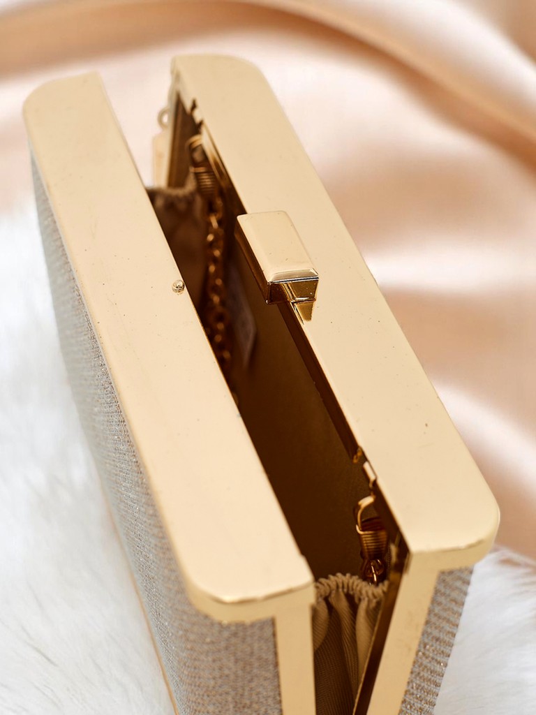 - Plic mic din material cu sclipici, închis cu capse. Vine cu barete detașabile—poate fi purtată în mână sau pe umăr. Perfectă pentru o seară plină de strălucire și eleganță!