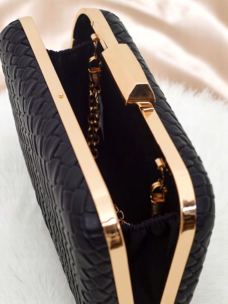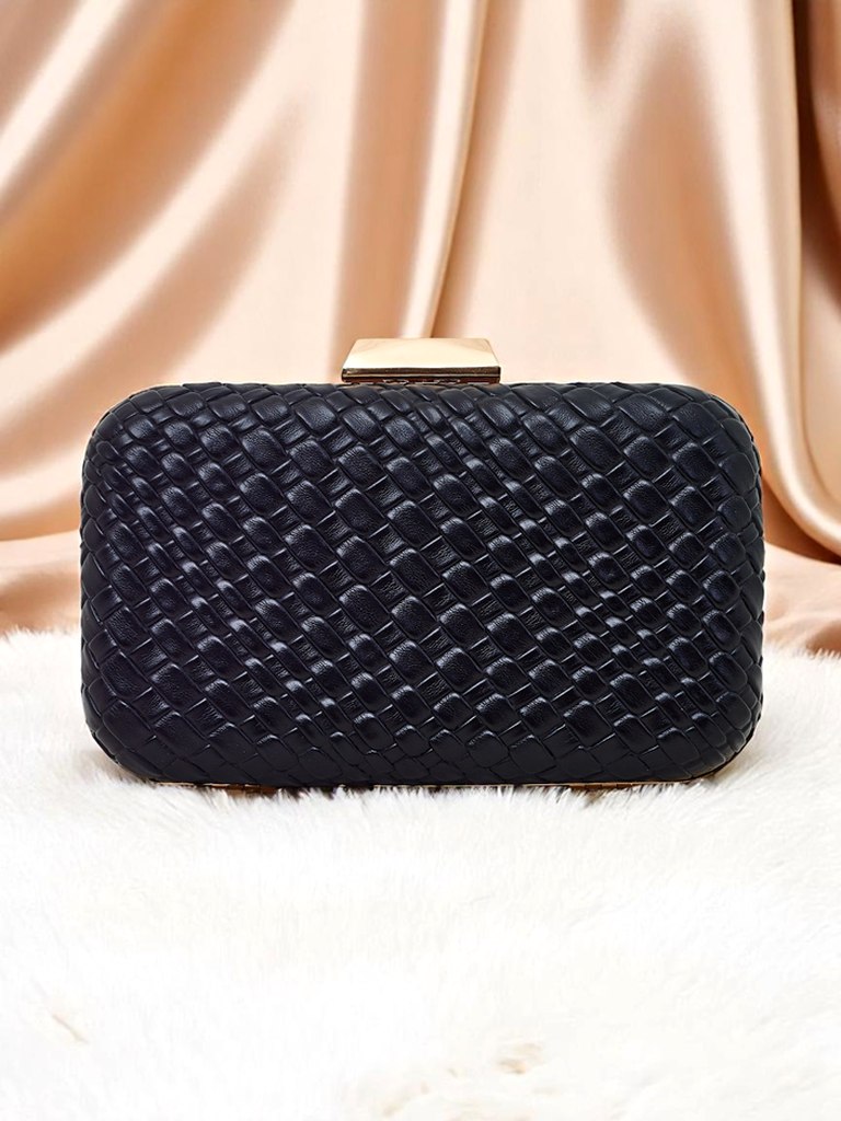 - Geantă plic stilată, realizată din piele ecologică embosată. Se închide cu capse, are o curea detașabilă — perfectă pentru a fi purtată în mână sau pe umăr. Eleganță și șic urban într-o formă compactă!