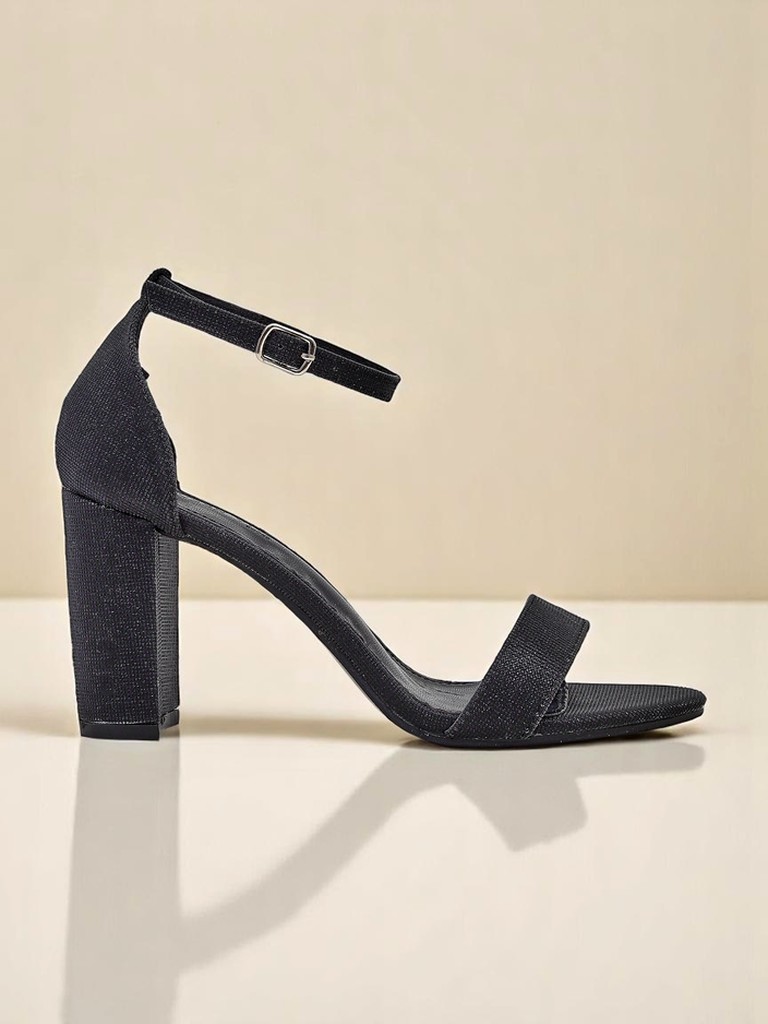 • Pantofi cu toc înalt, confecționați din material textil sclipitor. Brantul din piele ecologică și închiderea cu cataramă asigură confort, stabilitate și un aspect strălucitor pentru orice ocazie.