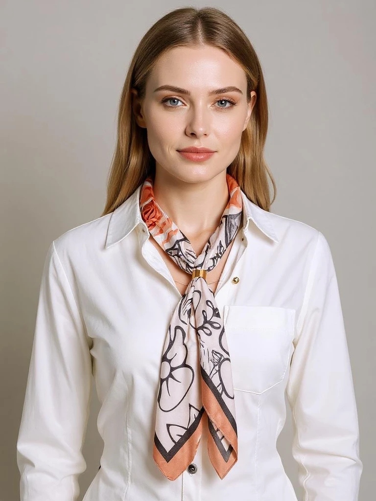 Apollonia women's scarf is a sophisticated accessory that perfectly combines the latest trends with the comfort of everyday use. Made of 100% high-quality polyester, the scarf is characterized by a pleasant-to-touch texture, softness and a subtle sheen of the fabric. The production process uses advanced weaving technologies, ensuring color durability and resistance to pilling and deformation. The scarf has an OEKO-TEX certificate, which guarantees safety for the skin. The pattern referring to the leopard print in shades of beige with black and red accents is a nod to the latest global trends. This dynamic motif makes every stylization gain character. The Apollonia scarf goes perfectly with classic and casual sets, adding lightness and a touch of extravagance. The benefits of choosing the Apollonia scarf are not only timeless design, but also wearing comfort throughout the day - light and breathable polyester easily fits around the neck and does not cause irritation. Its dimensions (69 cm long, 66 cm wide) allow for many ways of styling: 1. Tie as a classic scarf under the neck to an elegant white shirt and jacket - perfect for work or a business meeting. 2. Wrap around the head as a headband or tie on the hair - great for casual stylizations with jeans and a T-shirt. 3. Tie on the handle of a handbag or as a bracelet decoration - it will add an interesting detail to any stylization. To maintain the perfect appearance and durability of the scarf, it is recommended to hand wash in lukewarm water with a mild detergent and dry flat. Iron on a low temperature on the left side. Polyester does not absorb odors and dries quickly, making the scarf ideal for travel and everyday use. Currently fashionable animal patterns and neutral colors, such as beige and black, emphasize the versatility of the product and allow it to be adapted to various occasions and styles. The Apollonia scarf is a choice for both fans of classics and bolder trends!