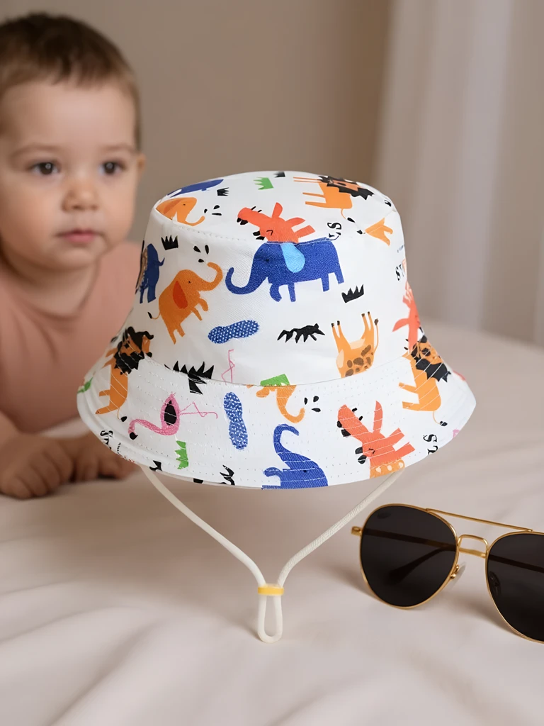 - Pălărie tip găleată pentru copii, cu un model colorat și vesel. Ușoară și confortabilă, perfectă pentru zilele de vară. Protejează de soare și adaugă energie ținutei oricărui copil!