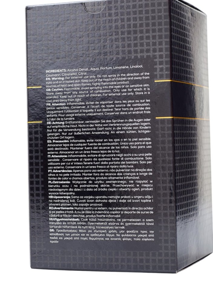 Ingrediente: Alcohol Denat., Aqua, Parfum, Limonene, Linalool, Coumarin, Citronellol, Citral.