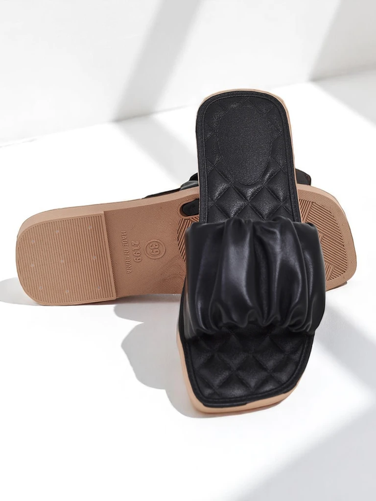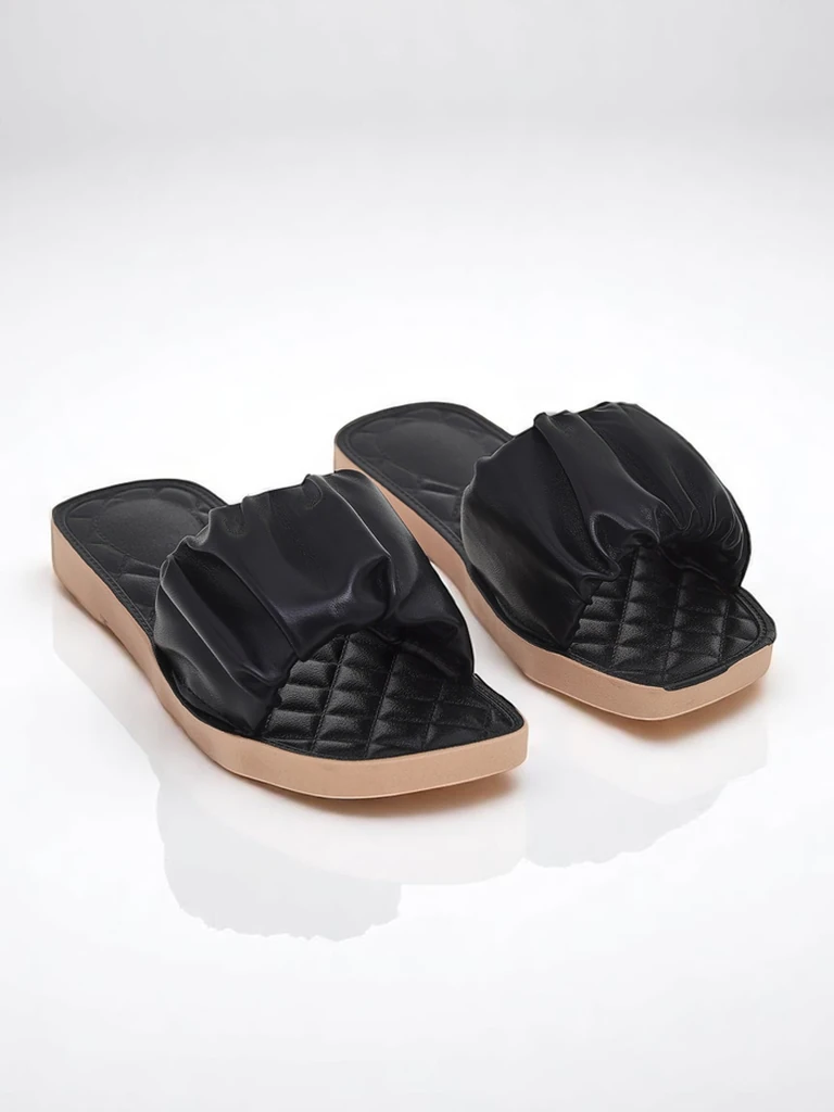 - Sandalia plat di dama trah\'a di kuero ekol\u00f3giko, ku un banda moderno ku ruchinan. Un opshon leve, k\u00f3modo i ku estilo pa verano \u2013 elegansia ekol\u00f3giko pa tur dia!