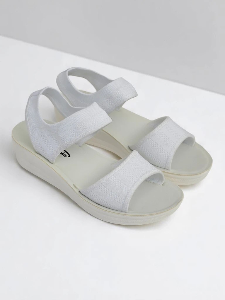 Sandalie Luminosa to eleganckie i ultralekkie sandały na platformie, które łączą w sobie ponadczasową klasykę i nowoczesną technologię produkcji. Cholewka wykonana została z wysokiej jakości, przewiewnej dzianiny poliestrowej, która jest nie tylko odporna na rozciąganie i deformacje, ale także zapewnia niezrównaną wentylację stóp nawet w najcieplejsze dni. Platformowa podeszwa z pianki EVA gwarantuje lekkość oraz doskonałą amortyzację – Twoje kroki będą miękkie i pewne przez cały dzień. Wszystkie materiały zostały dobrane z troską o Twoje zdrowie i komfort, spełniając standardy certyfikatów OEKO-TEX®.Sandały nie zawierają substancji szkodliwych i są bezpieczne nawet dla wrażliwej skóry. Projekt wyróżnia się minimalistycznym wzornictwem oraz szerokim paskiem na rzep, który pozwala łatwo dopasować but do kształtu stopy. Wyściółka wykonana jest z miękkiego, hipoalergicznego materiału syntetycznego, delikatnego w dotyku, który zapobiega powstawaniu otarć.Najważniejsze zalety Sandalie Luminosa to lekkość, przewiewność i niezwykle łatwa pielęgnacja. Tworzą niepowtarzalne uczucie świeżości podczas upalnych dni, a anatomiczny kształt podeszwy wspiera komfort podczas długich spacerów.Inspiracje stylizacyjne:1. Casualowy look: Zestaw sandały z białymi lnianymi spodniami i pastelowym topem – idealny wybór na spacer po mieście czy zakupy.2. Letnia elegancja: Połącz sandały z lekką, zwiewną sukienką midi oraz dużą torbą typu shopper na spotkanie w kawiarni.3. Sportowy vibe: Noś do krótkich szortów i oversize’u t-shirtu – stylizacja na wakacyjny wyjazd lub aktywny dzień na świeżym powietrzu.Instrukcja pielęgnacji: Sandały czyścić delikatnie wilgotną szmatką z dodatkiem łagodnego mydła, unikać prania w pralce. Suszyć z dala od źródeł ciepła, aby zachować elastyczność materiału. Przechowywać w suchym miejscu, najlepiej w oryginalnym pudełku.Trendy: Jasna gama beżów i bieli oraz ażurowa faktura są obecnie bardzo modnym elementem letniego obuwia. Platforma zapewnia dodatkowy komfort i idealnie wpisuje się w miejski, lekki styl codzienny.
