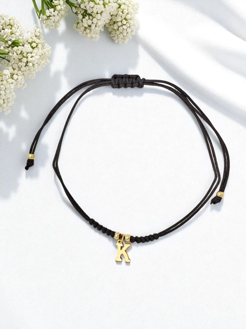 - Brățară elegantă din șnur cu lungime reglabilă, decorată cu o literă. Subtilă și personalizată, perfectă pentru purtare zilnică. O alegere ideală pentru cei care apreciază accentele unice de bijuterii, adăugând caracter oricărei ținute.