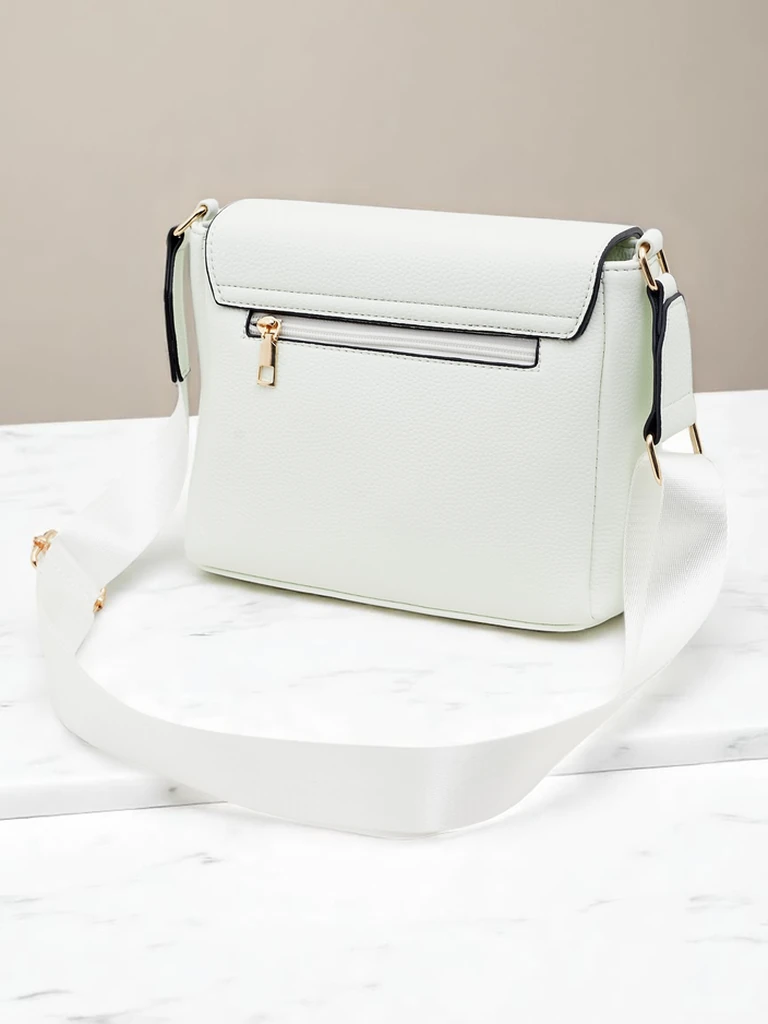 - Poșetă compactă din piele ecologică, cu un singur compartiment și două buzunare practice. Cureaua reglabilă permite ajustarea lungimii, iar elementul decorativ din față adaugă eleganță. Perfectă pentru utilizarea de zi cu zi – combină stilul și funcțional