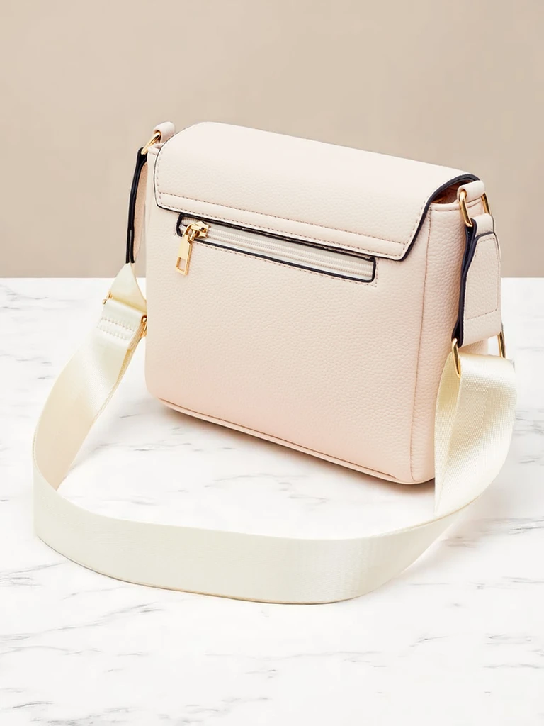 - Poșetă compactă din piele ecologică, cu un singur compartiment și două buzunare practice. Cureaua reglabilă permite ajustarea lungimii, iar elementul decorativ din față adaugă eleganță. Perfectă pentru utilizarea de zi cu zi – combină stilul și funcțional