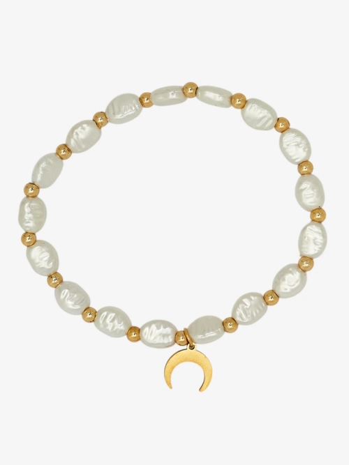 - O brățară delicată pentru femei, pe bandă elastică, decorată cu perle și mărgele. Farmecul său este accentuat de un pandantiv frumos care atrage subtil atenția. Perfectă atât pentru ținute elegante, cât și pentru cele de zi cu zi, oferind o notă de clasă.