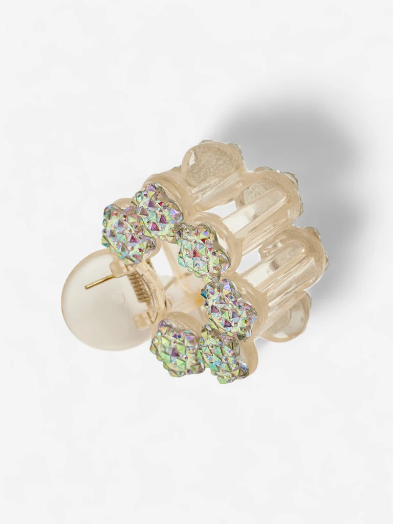 The Aurora Flora hair clip is a unique accessory that delights with its elegance and shine. Made of high-quality transparent plastic (BPA-free), it has a delicate finish and high durability, making it ideal for everyday use. The decorative part consists of flowers covered with shimmering aurora borealis-style acrylic crystals that effectively reflect light and attract attention. The spring mechanism enables quick and secure fastening of the hairstyle, and the strong grip ensures stability even during intense movements.