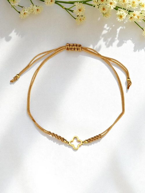 • Brățară reglabilă cu șnur în stil marin, decorată cu un charm subtil auriu. Ușoară și elegantă, perfectă pentru zilele de vară. Adaugă o notă de strălucire aurie oricărei ținute, combinând vibrațiile marine cu un strop de lux. Perfectă pentru plajă și mom
