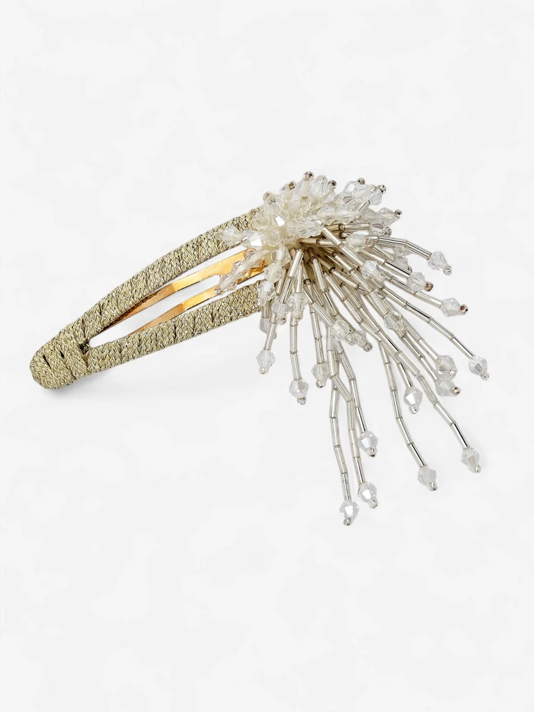 - Ozdobna spinka do włosów z koralikami. Subtelna i stylowa – idealna do upięć na wyjątkowe okazje i jako elegancki akcent w codziennych fryzurach.