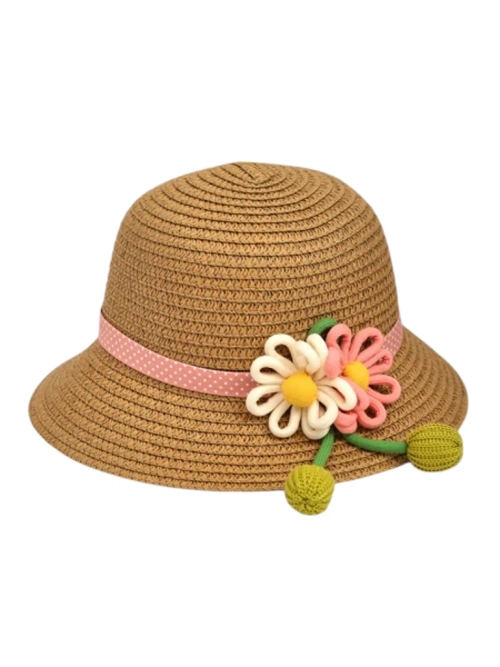 - Pălărie fermecătoare pentru fată, confecționată din paie naturale, decorată cu petice în formă de flori. Ușoară și respirabilă, perfectă pentru zilele de primăvară și vară. Adaugă farmec, fiind un accesoriu ideal pentru plajă sau plimbare.