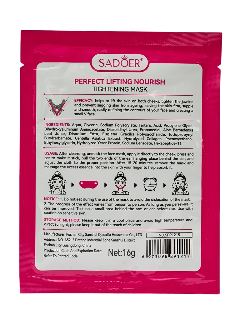 Lifting Venera Mask di Sadoer ta un maskarilla moderno pa hisa e forma oval di e kara, inspirá pa ritualnan di kuido di antes di Gresia i Italia. Trahá di un material di hydrogel inovativo, enrikesé ku ingredientenan aktivo avansá, e ta funshoná di forma kompleto: e ta hisa intensamente, hidratá i suavisá rucha den e área di e liña di kakumbein i masashi. E ingredientenan prinsipal ta Aqua, Glicerina, kolageno hidrolisá, ekstrakto di wákrota asiátiko (Centella Asiatica), ekstrakto di aloe (Aloe Barbadensis), proteínanan di fermente hidrolisá i polisakaridonan di alg Euglena Gracilis. E kombinashon di ásido tartáriko (Tartaric Acid), ásido hialuroniko i aminoásidonan ta garantisá hidratashon intenso, fleksibilidat i protekshon kontra efektonan di biramentu bieu. E teknologia apliká ta suponé tenshon di e maskarilla bou di e liña di kakumbein i riba e masashi, lokual ta yuda hisa e kueru i mehorá su firmeza, i ademas ta protehá kolageno i elastina kontra degradashon. E maskarilla ta adkerí perfektamente na e kueru di kara, redusiendo efektivamente kaida i mehorando e kontorno V-line. Despues di e promé uso kaba, e kueru ta bira mas firme, mas fleksibel i visibelmente mas suave. Uso sistemátiko ta kontribuí na redusí e visibilidat di rucha chikitu i mehorá e forma oval di e kara. Konsehonan di estilo – 3 idea pa mix & match: 1. Tratamentu di hisamentu perfekto promé ku un salida importante – usa e maskarilla mainta, pa e kueru ta tenshoná promé ku e make-up di anochi pa un fiesta òf gala. 2. Ritual SPA na kas – kombiná ku un mantel di seda i un banchi di katuna, pa krea un ritual di kuido luhoso den e komfort di bo kas. 3. Trabou na distansia i konferensianan di video – pone e maskarilla durante un pousa, pa mehorá instantáneamente bo aparensia i konfiansa dilanti di kámara. Wardamentu i kuido: Warda e maskarilla den un lugá fresku i seku, evitá temperatura haltu i lus di solo direkto. Despues di uso no laba e material, e maskarilla ta di un solo uso. Promé ku e promé uso hasi un tèst di alergia, spesialmente ku kueru sensitivo. Tene leu for di muchanan. Tendensianan: Aktualmente kuido di V-line i e tendensia di hisamentu di kueru ta ganando popularidat enorme na Europa i Asia. Aksesorionan pa modelá e forma oval di e kara, manera maskarillanan di hydrogel ku ta hisa, ta un éksito den kuido anti-aging moderno na kas.