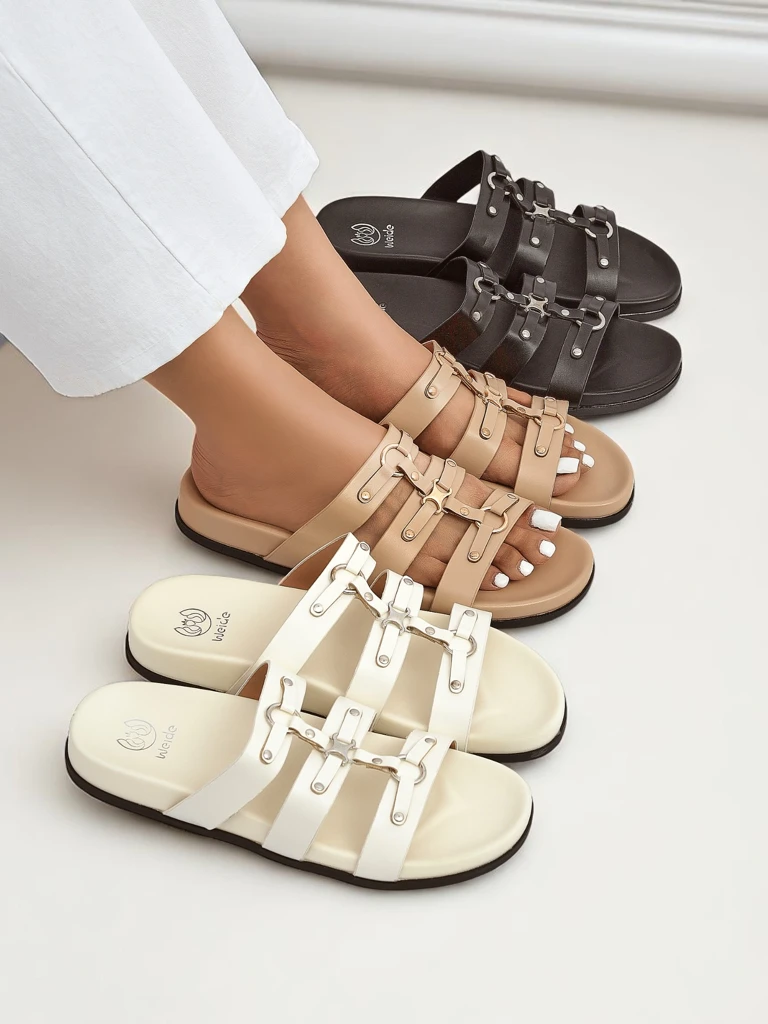 - Stylowe klapki w stylu rzymianek łączą klasyczną elegancję z wygodą. Paski efektownie oplatają stopę, zapewniając stabilność i modny wygląd. Idealne na lato – do sukienek, szortów i miejskich spacerów.
