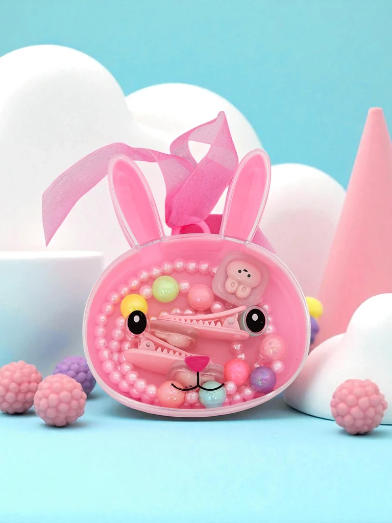 Il tschaiver da giuglias Bambina Dolce è in tschaiver unic creà spezialmain per las pitschnas amaturas da moda, inspirà dal sentiment talian e da la legria da l'uffanza. Il tschaiver cumpiglia ina sacchetta rosa en furma da cunigl cun ina bella fiocca, ina varletta ed in bratschalet da perlas coluradas e dus clips decorads cun in motiv da mattas. Tut ils elements èn fatgs da plastic ABS da qualitad auta e segira e da silicona betg toxica, cun certificats da segirezza CE per products per uffants. La finiziun è lisa, senza substanzas nuschaivlas, che protegia la pel sensitiva da l'uffant cunter irritaziuns. Il tschaiver na cuntegna betg pitschens elements che sa laschan allontanar facilmain, quai che al renda ideal per uffants anc pli pitschens. La varletta ed il bratschalet han in fil elastic e stretgivel, uschia ch'els sa laschan trair ed allontanar facilmain senza il privel da rumper. Ils clips han ina serra leva cunter pressiun, che n'irrita betg las ureglias. Bambina Dolce fa plaschair betg be cun sia parita, mabain er cun sia funcziunalitad: la sacchetta è ideala per tegnair chaussas pitschnas u sco mini-portmonai. Las perlas coluradas agiuntan a mintga stil feminin e legraivel. Il design magic sa referescha a las tendenzas actualas da "kawaii" e colurs pastel, che èn fitg popularas tranter ils uffants pli giuvens. Co purtar Bambina Dolce? 1. Mintga di cun ina vestga da tul, ina blusa clera e ballarinas – il tschaiver accentuescha l'aspect magic, ideal per il plaz da giug u per far ina spassegiada. 2. Per festas d'anniversari en tschaiver cun ina vestga eleganta en colurs pastel, per agiuntar charme ed eleganza infantila. 3. Per festas da famiglia cuminescha cun jeans simplas ed in T-shirt – accessoris colurads vivifitgeschan mintga vestgadira. Nettai il tschaiver be cun in pannetg umid – evitescha meds da lavar agressivs. Tegnai la sacchetta e las giuglias en in lieu sitg, lunsch davent da funtaunas da chalur. Igl è recumandabel d'allontanar ils clips durant la notg. Bambina Dolce è ina idea da regal ideala – sviluppa la creativitad ed il gust estetic, integrondras en las tendenzas da moda actualas per uffants.
