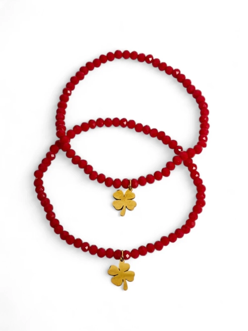 - Bransoletka z koralikami i zawieszką koniczynki to stylowy talizman szczęścia. Delikatna i elegancka, symbolizuje pomyślność, nadzieję i pozytywną energię. Idealna na co dzień, jako subtelny dodatek z wyjątkowym przesłaniem.