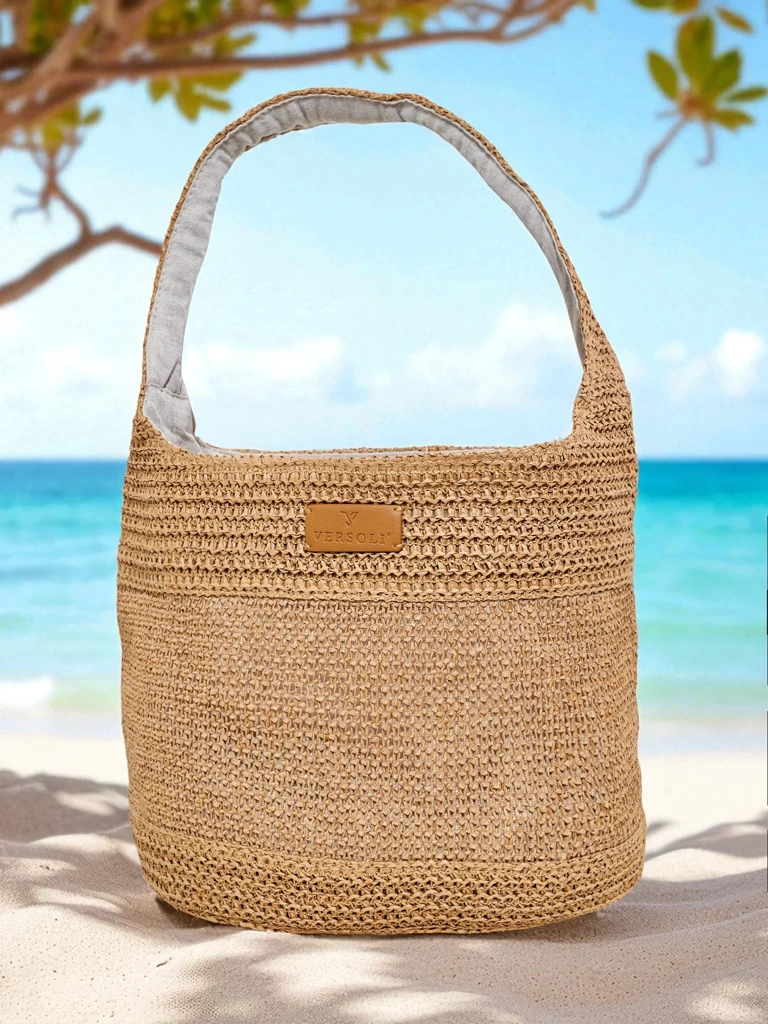 - Geantă de paie stilată cu un singur compartiment și un buzunar, închisă cu fermoar. Ușoară și încăpătoare, perfectă pentru zilele de vară. Excelentă pentru ținutele casual, oferă confort și organizare, păstrând în același timp un farmec la modă și de vaca