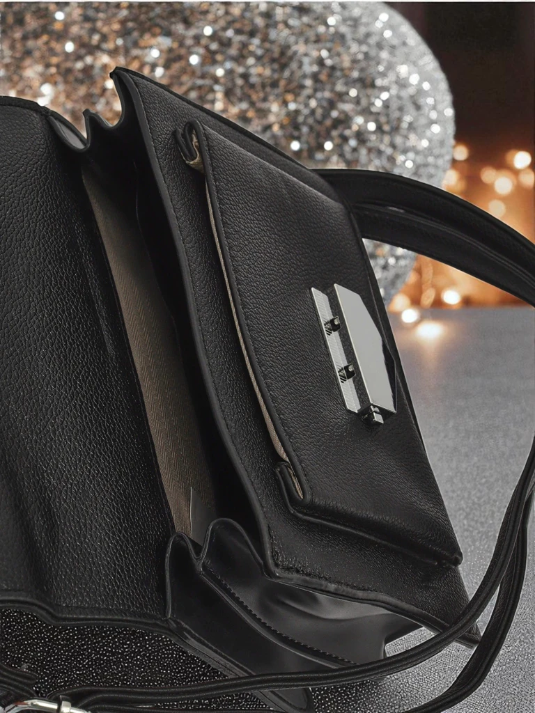 • Poșetă tip plic elegantă de dimensiuni mici pentru femei, confecționată din piele ecologică. Model cu închidere cu capse, are 1 compartiment. În plus, curea detașabilă și reglabilă. Perfectă pentru evenimente formale!