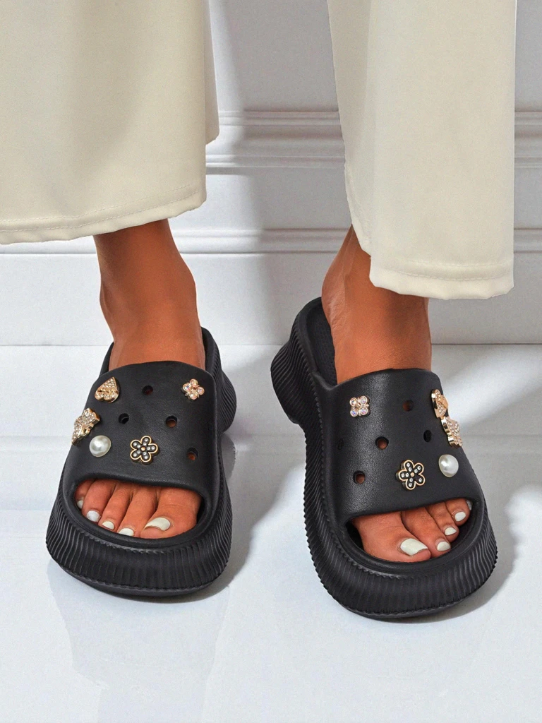 Royalfashion Papuci de damă din cauciuc cu decorațiuni Slash Glam