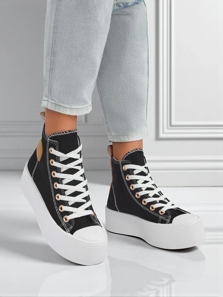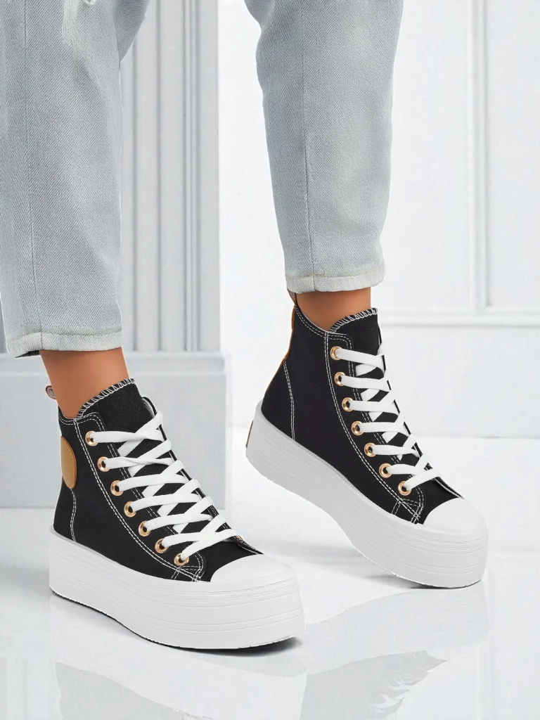 Teniși de damă Callisto Nero cu platformă, material textil, negri, vară/toamnă