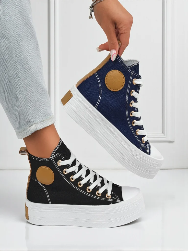 - Teniși moderni din material textil, cu talpă groasă. Confortabili, ușori și stilați – ideali pentru ținute urbane și purtare zilnică. Confort și trend într-un singur pas.
