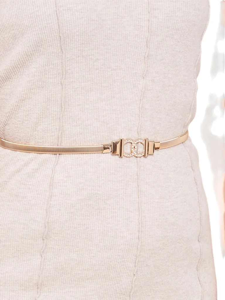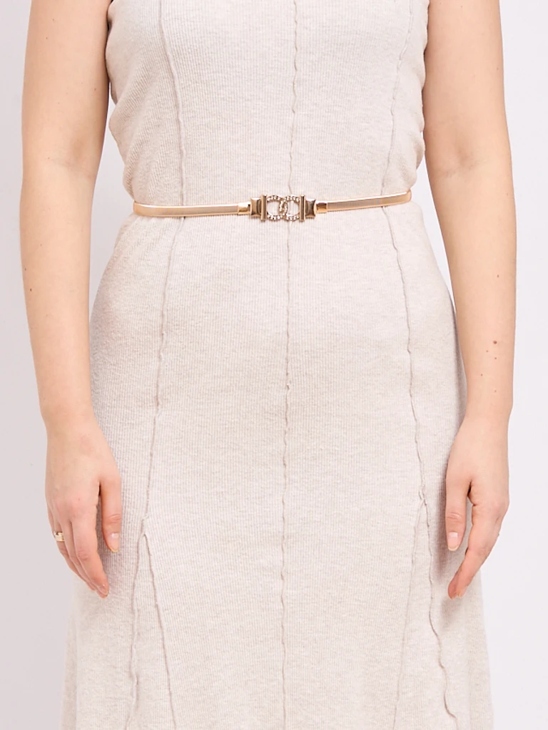 Aurelia Roma – Curea subțire de damă aurie, metalică, cu cataramă decorativă