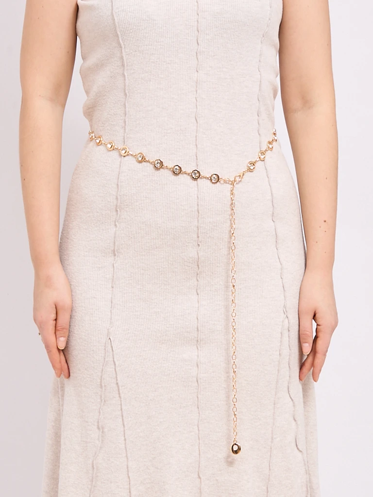 Aurelia Bella Donna – curea metalică de damă cu cristale, aurie 115 cm