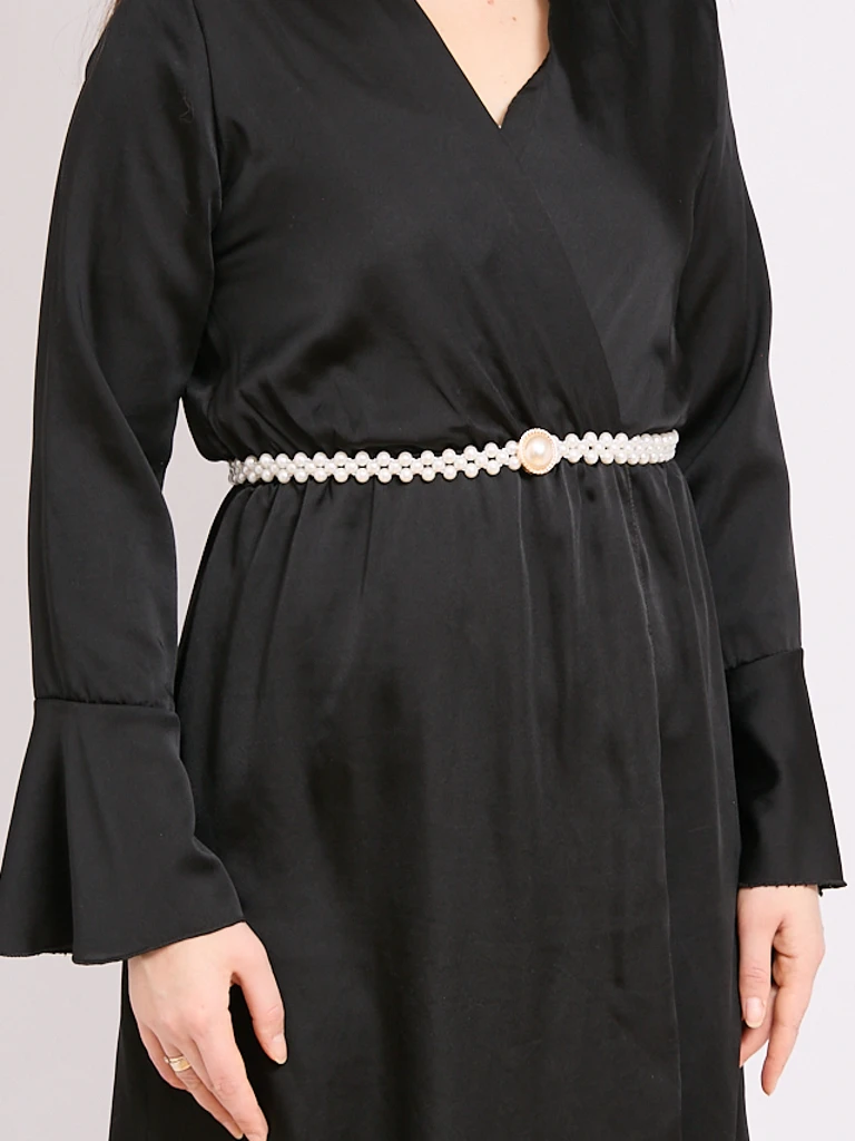- Curea de damă cu perle pe elastic - un accesoriu universal și confortabil pentru ținutele de zi cu zi. Ideală pentru blugi, pantaloni sau rochii. Stil și funcționalitate într-unul singur!