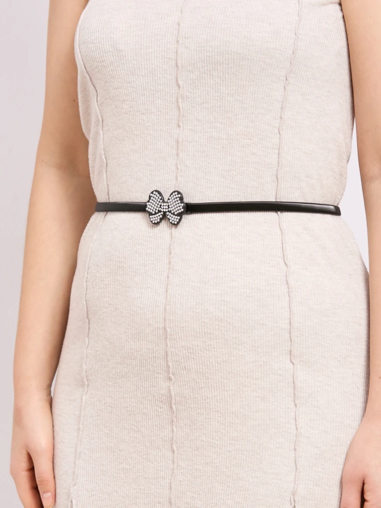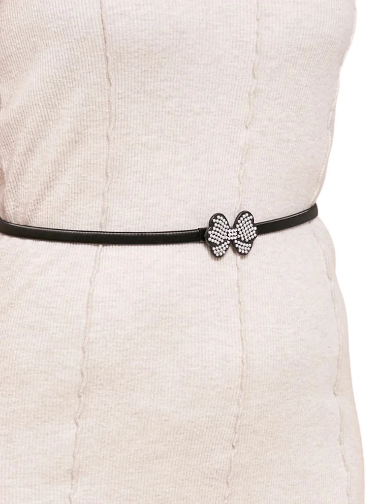 Curea neagră de damă Melina cu fundă metalică în stil latino glam