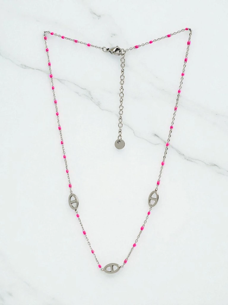 De ce merită să alegi acest colier? Combinația dintre strălucirea rece a argintului și accentul puternic de culoare îl face atrăgător și completează perfect multe ținute. Este ușor, confortabil de purtat și vă permite să vă exprimați prin detalii subtile.