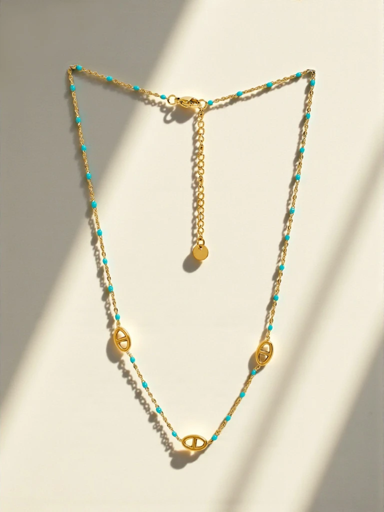 Colier Aurelia Kyanos în stil grecesc, din oțel placat cu aur și mărgele