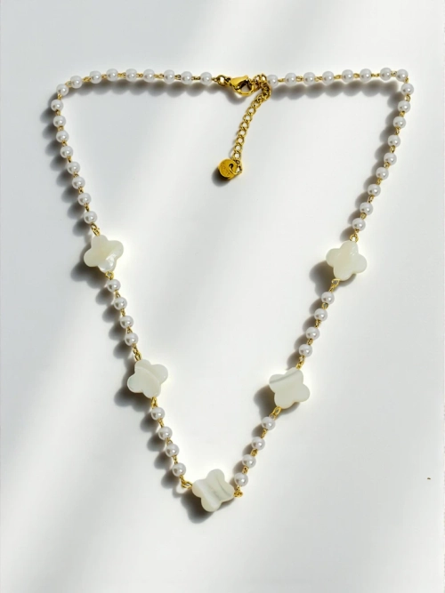 - Colier cu perle sintetice și elemente aurii – un accesoriu elegant, atemporal.