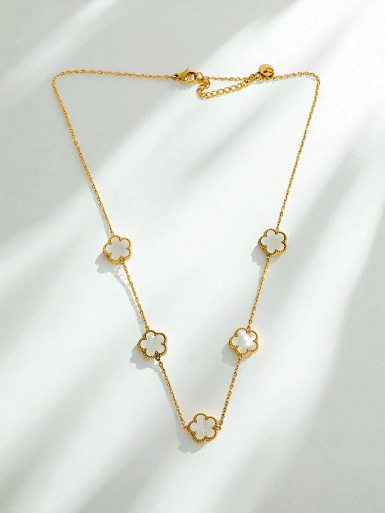 Colier Persefone Aurea cu flori albe pe lanț aurit