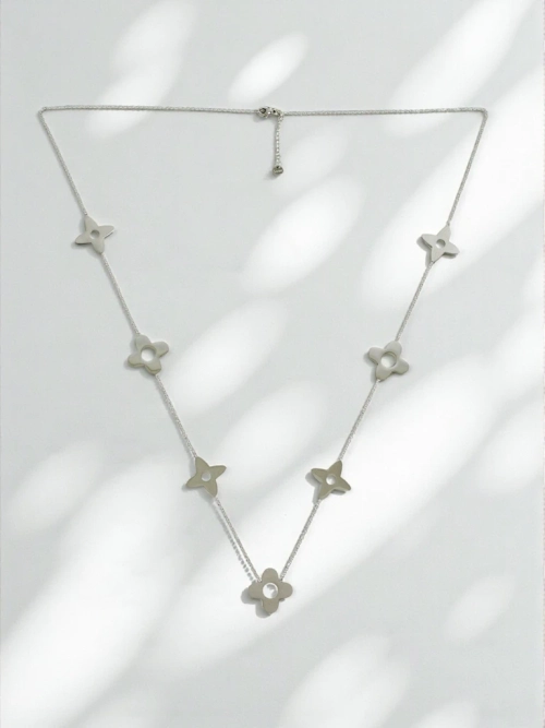 - Colier argintiu cu motive florale, ideal pentru orice ocazie – bijuterii moderne la modă.