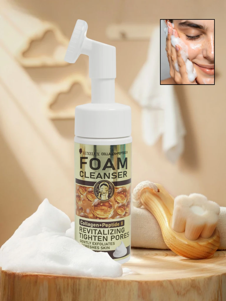 - Spuma de curățare facială cu perie îndepărtează delicat impuritățile și machiajul, susținând în același timp elasticitatea pielii datorită colagenului și peptidei 8. Pielea devine netedă, fermă și radiantă.