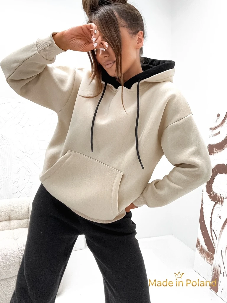 - Set de trening de damă confecționat din bumbac plăcut. Bluză călduroasă cu glugă și buzunare. Pantaloni lungi cu elastic în talie și la glezne, cu 2 buzunare. Simte stilul în acest set minunat!