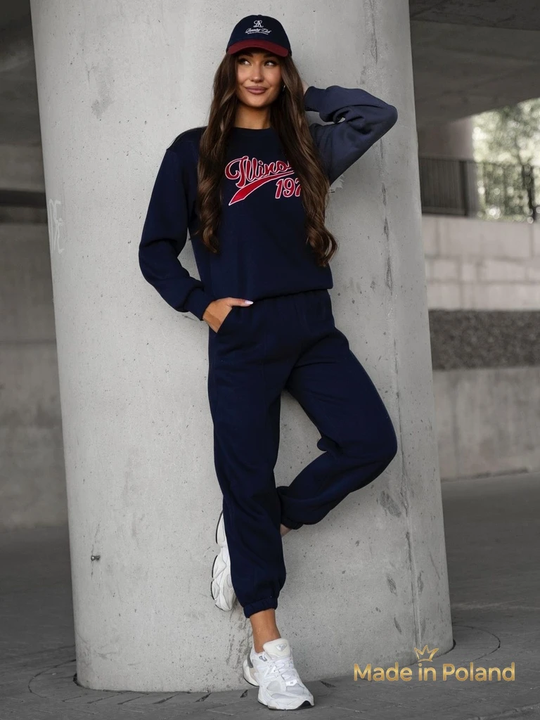 - Set de trening pentru femei, confecționat dintr-un material plăcut din bumbac. Bluza are inscripții decorative. Pantaloni lungi cu elastic în talie și la glezne, cu 2 buzunare. Simte stilul în acest set minunat!